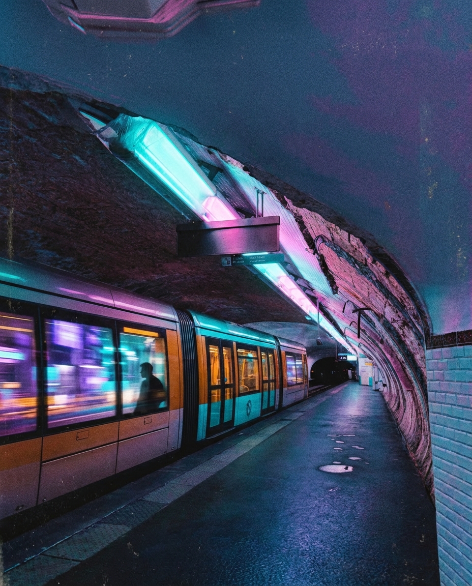 Memory#01 in the Archive of Lost Tomorrows: the last tram home, reimagined through real photographs and AI.